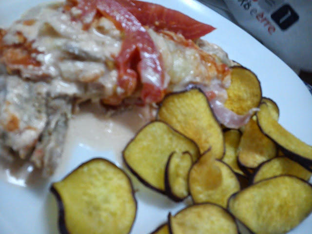 Hoje, e mais uma vez com a inspiração da minha Titá e dos seus bifes lá no nosso grupinho, resolvi aproveitar umas fatias de carne assada e saíram estes deliciosos bifes à la Titá acompanhados de chips de batata doce!
